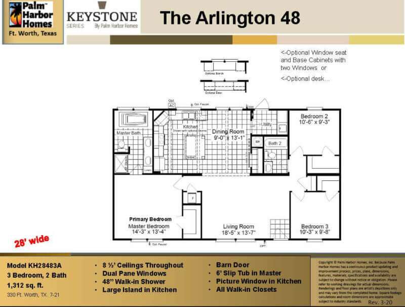 Is a 48′ x 28′ (1312 SQ FT) alternative to the slightly larger Arlington 48 KH30483A 48′ x 30′ (1440 SQ FT) from Palm Harbor Homes.