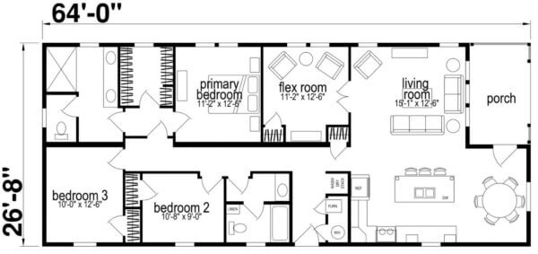 - 64′ x 26′-8″